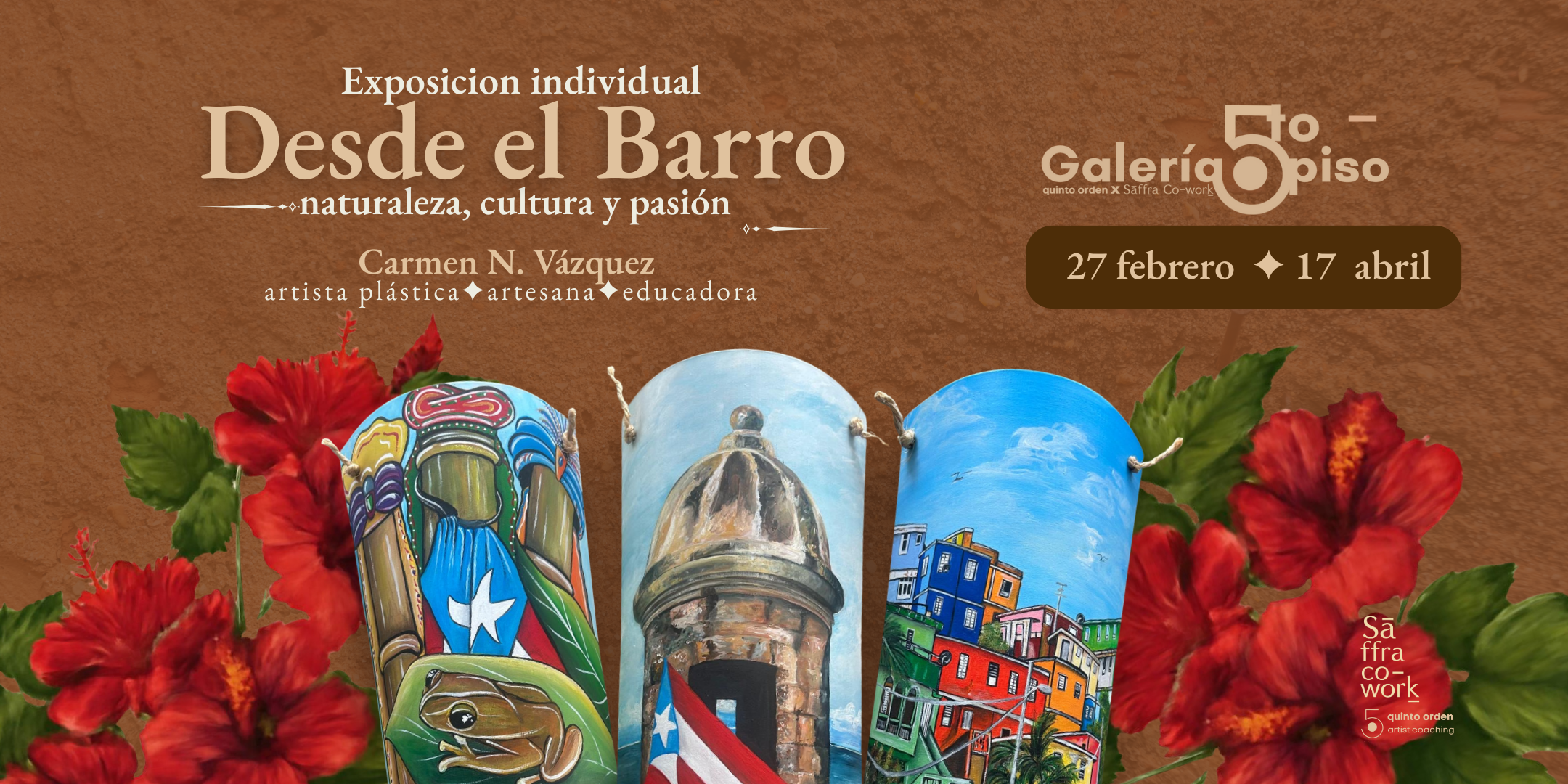 Te invitamos a la apertura de la exposición individual Desde el Barro: naturaleza, cultura y pasión de la artista y artesana puertorriqueña Carmen N. Vázquez, en la Galería 5to Piso.